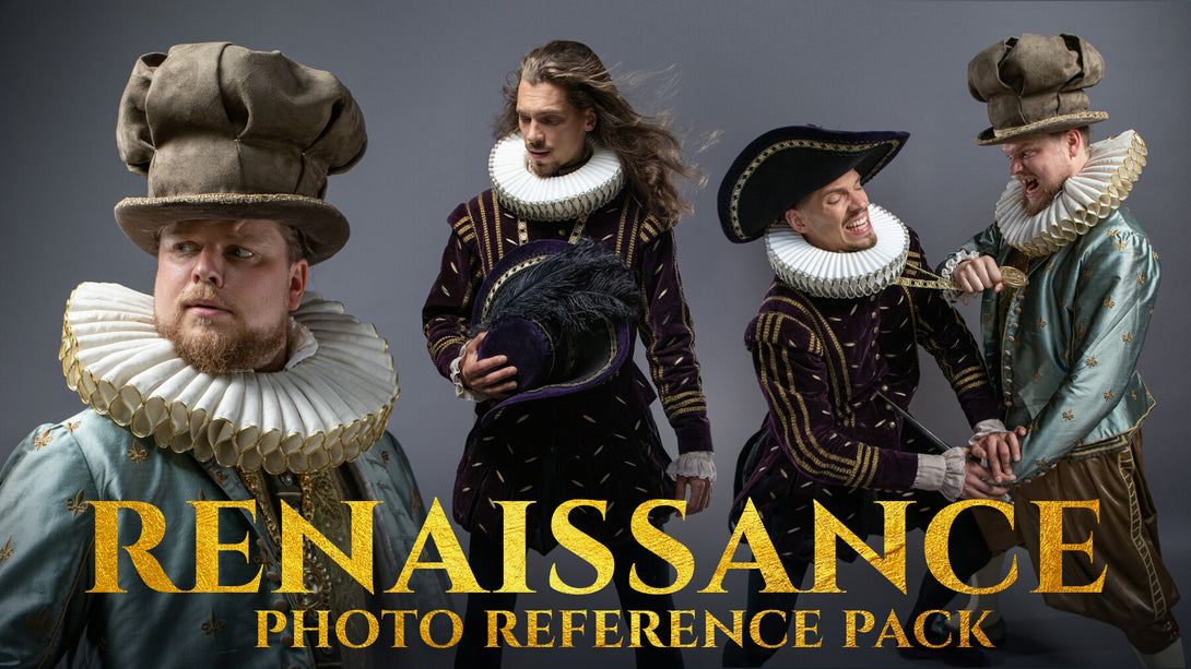 Renaissance photo reference is a great pack for everyone who is looking for a cool characters to portray. You'll find many turnaround poses. Are you working on a comic book? Then, you'll be pleased with dynamic poses and angles. Models are interacting in various scenarious or posing alone. I hope you'll find a good use for these characters in your work wheter it's for books, posters or your own special projects.